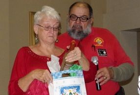 Your MC for the evening and Grand Knight chose a beautiful necklace and earrings from the Gift Table; unfortunately lost them in a steal... But that's ok, in return I got scratch offs and won $4!